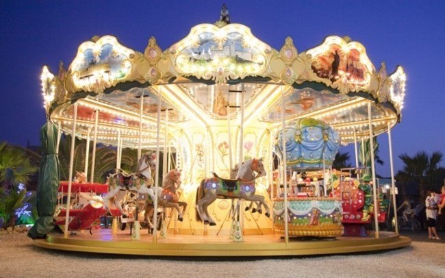 - mini fête forainepetit manège enchanté, machine à beignets frais et barbe à papa..